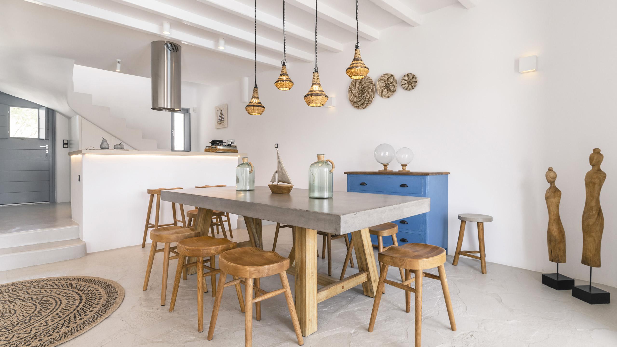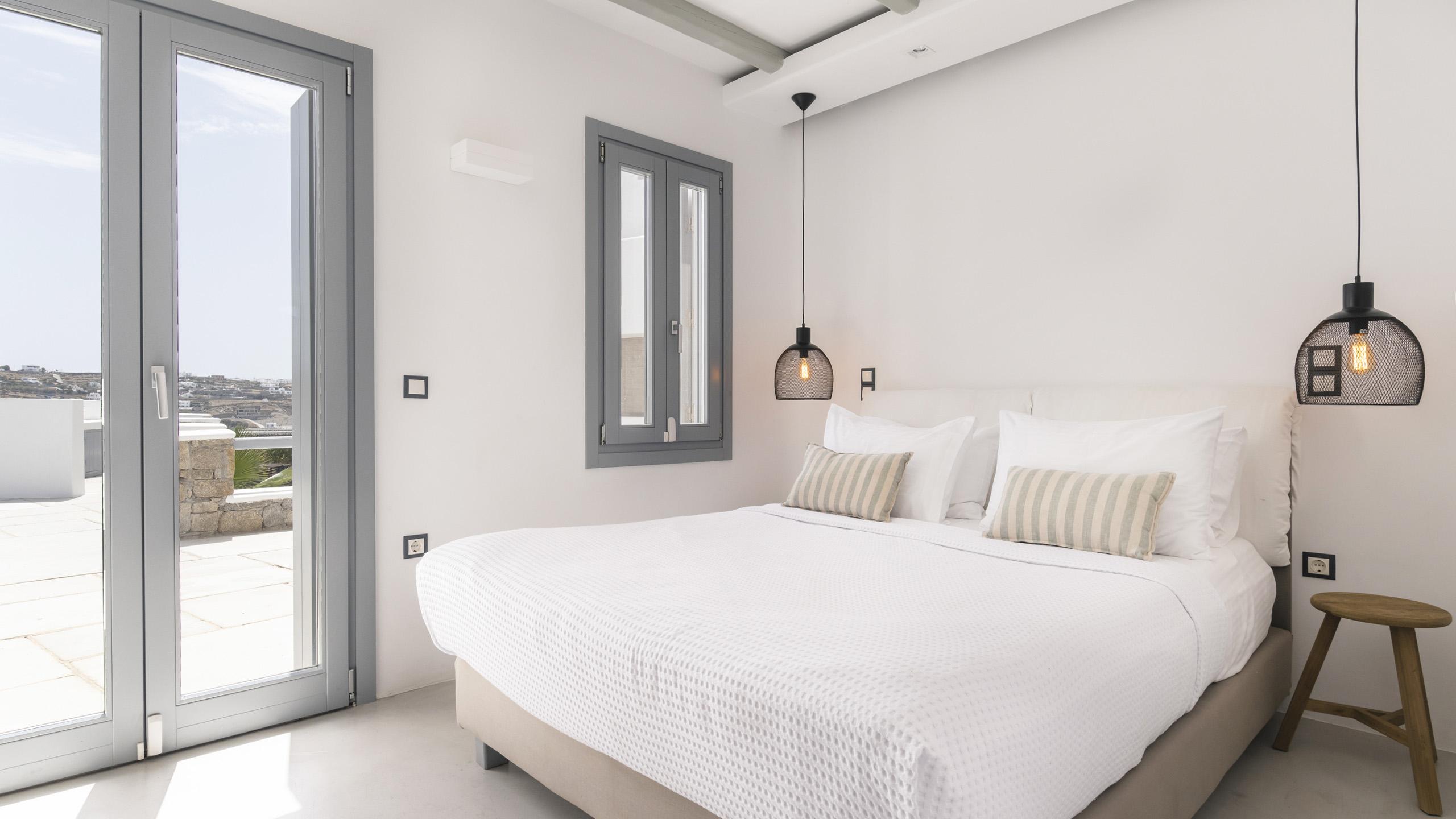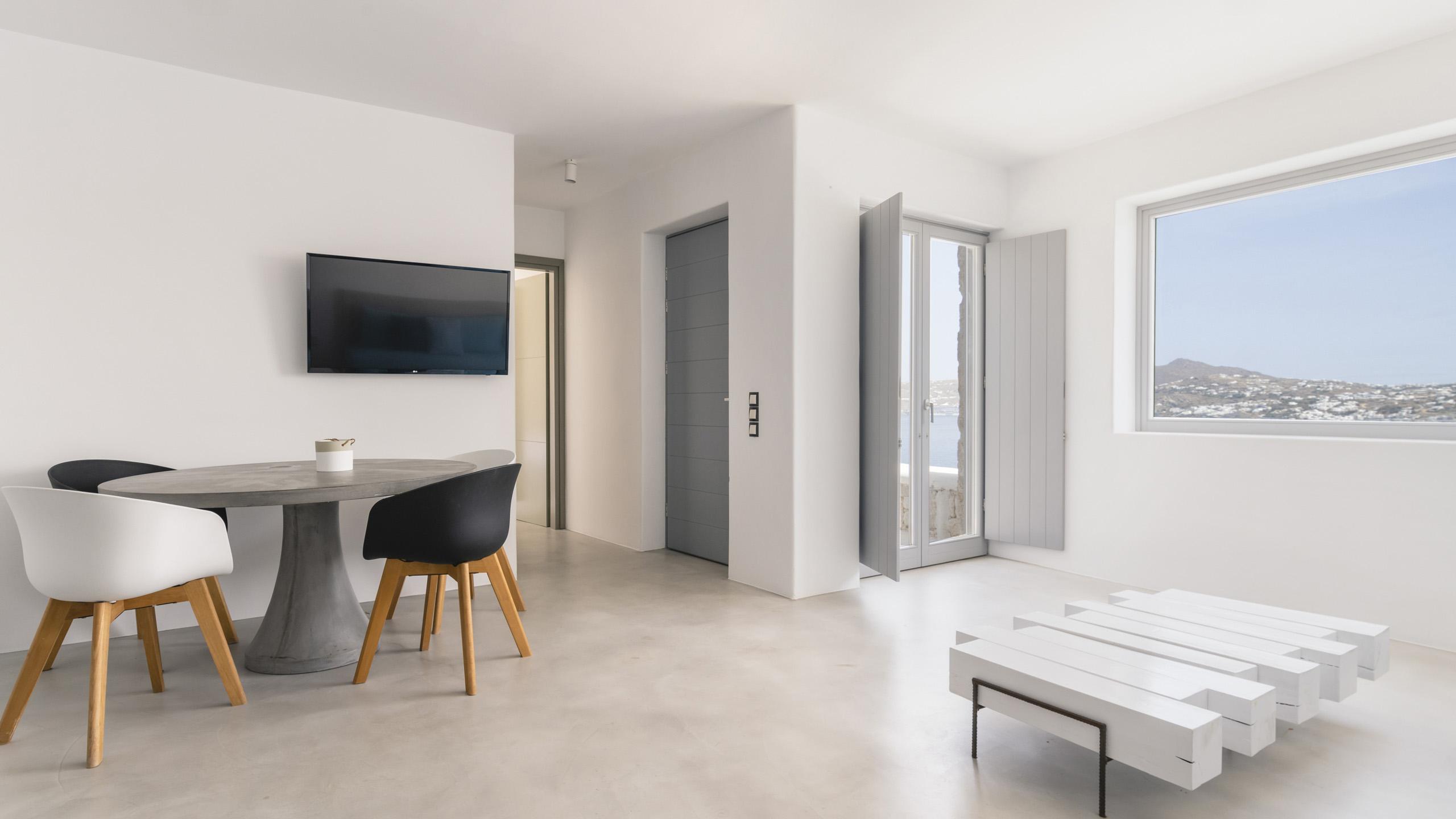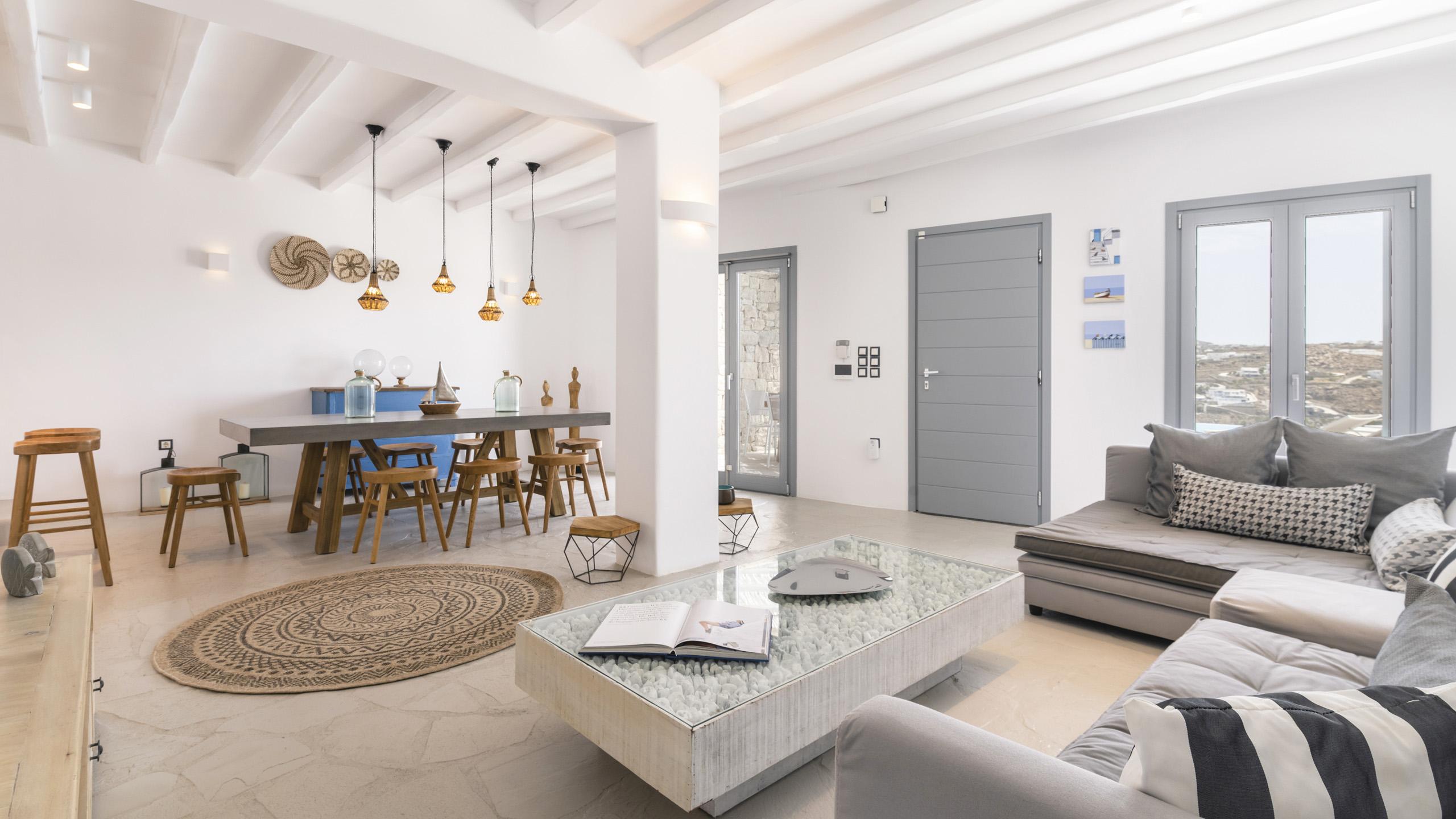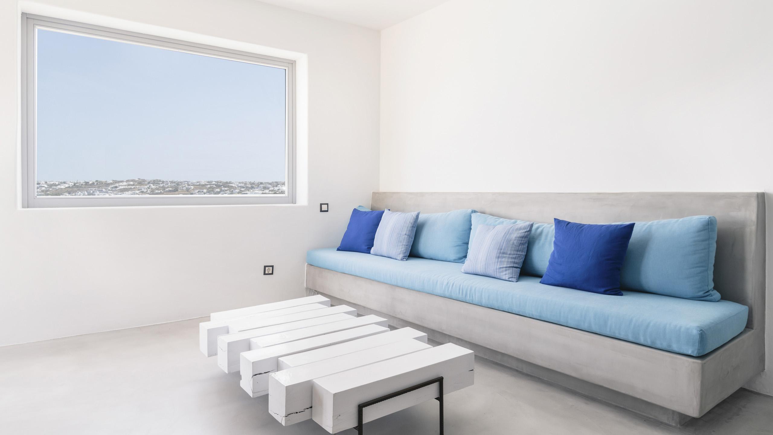Arroccata sulle colline in un complesso residenziale a Kanalia, Maya gode di un'ampia vista che spazia dalla Baia di Korfos agli iconici mulini di Mykonos Town. La posizione è anche molto favorevole nei confronti di alcune famose spiagge, negozi di ogni tipo e la città, facilmente raggiungibile in pochi minuti di auto.