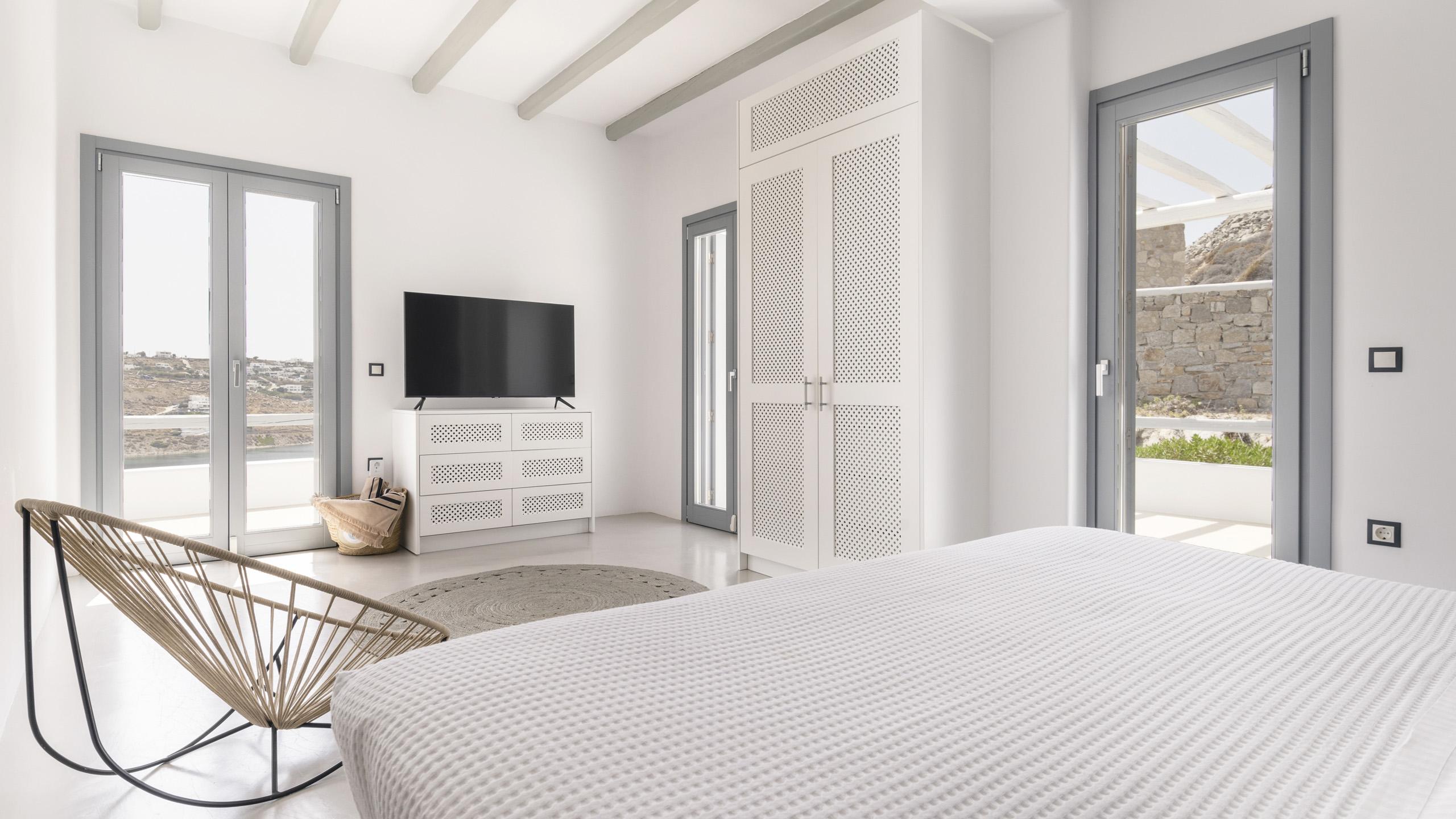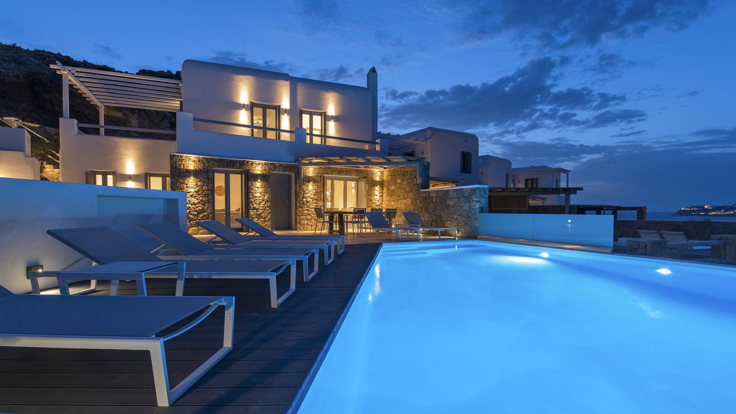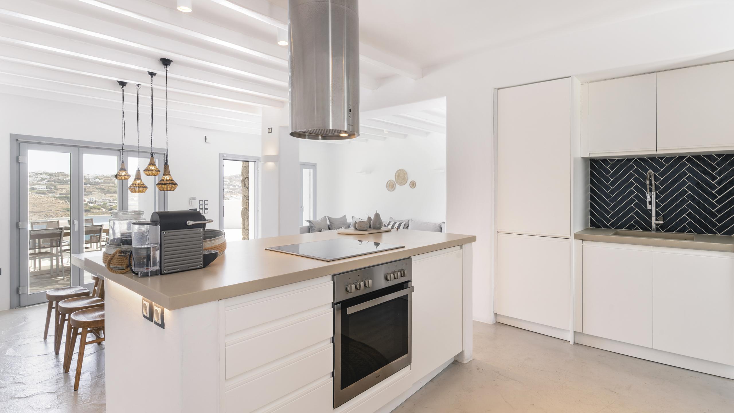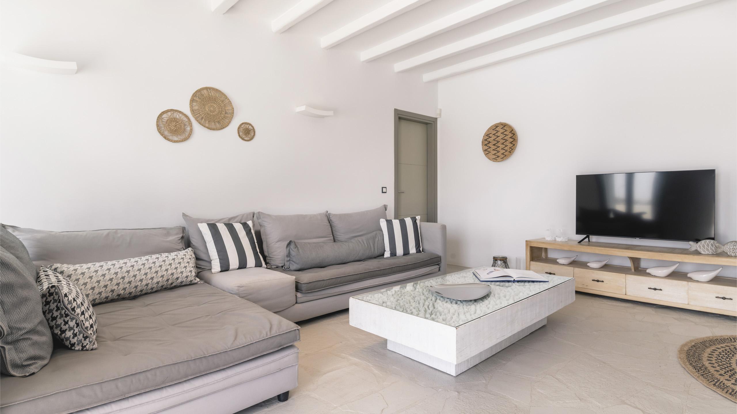 Arroccata sulle colline in un complesso residenziale a Kanalia, Maya gode di un'ampia vista che spazia dalla Baia di Korfos agli iconici mulini di Mykonos Town. La posizione è anche molto favorevole nei confronti di alcune famose spiagge, negozi di ogni tipo e la città, facilmente raggiungibile in pochi minuti di auto.