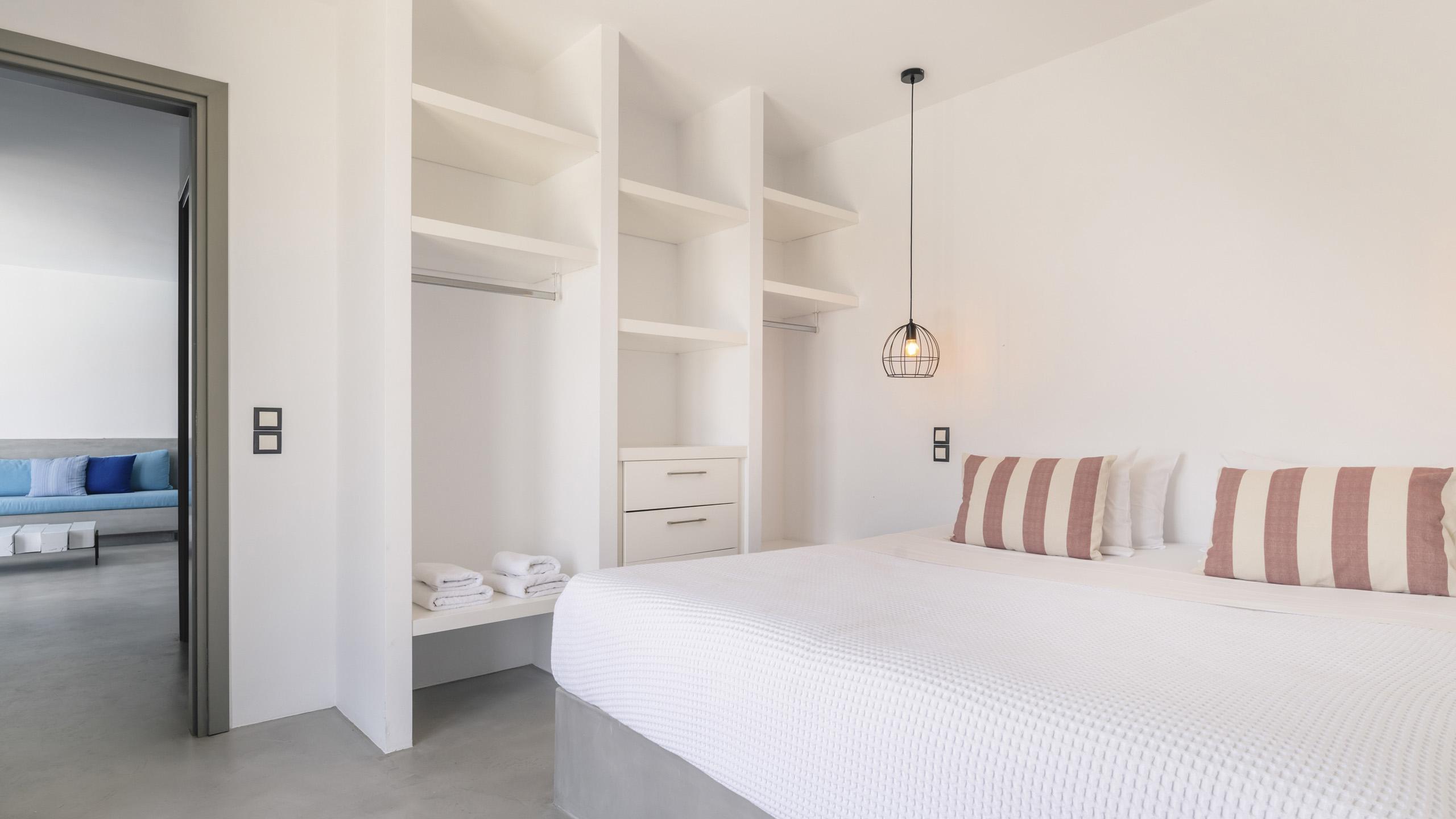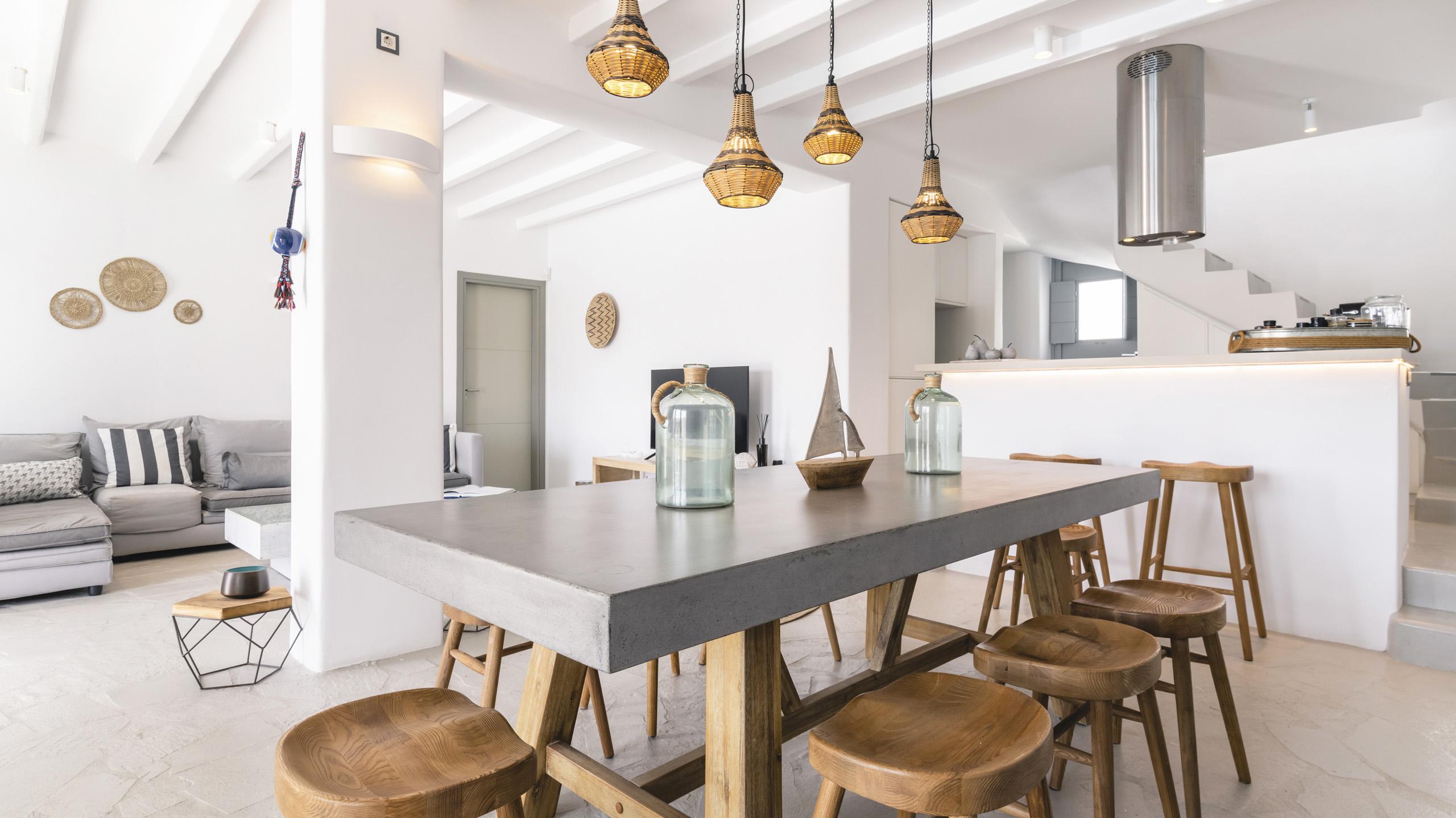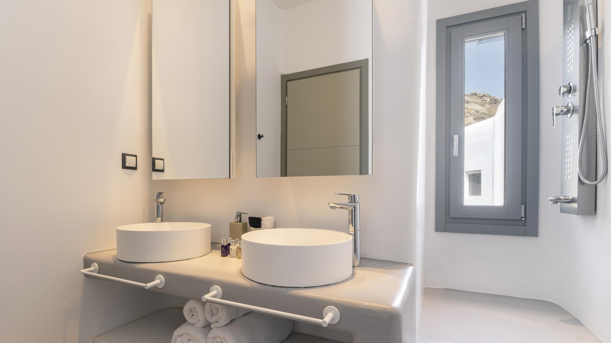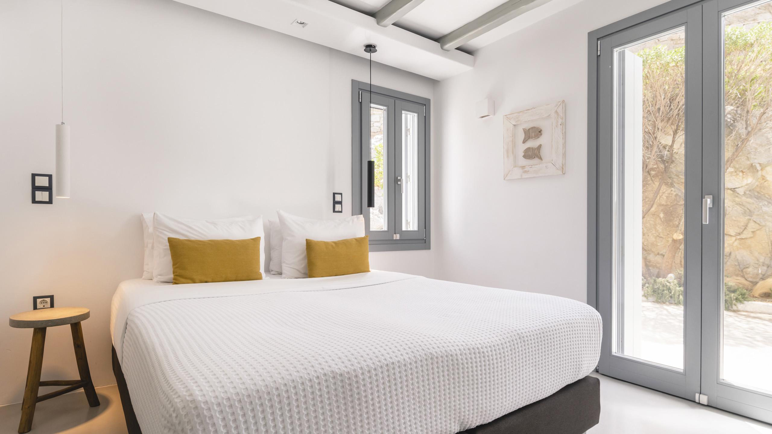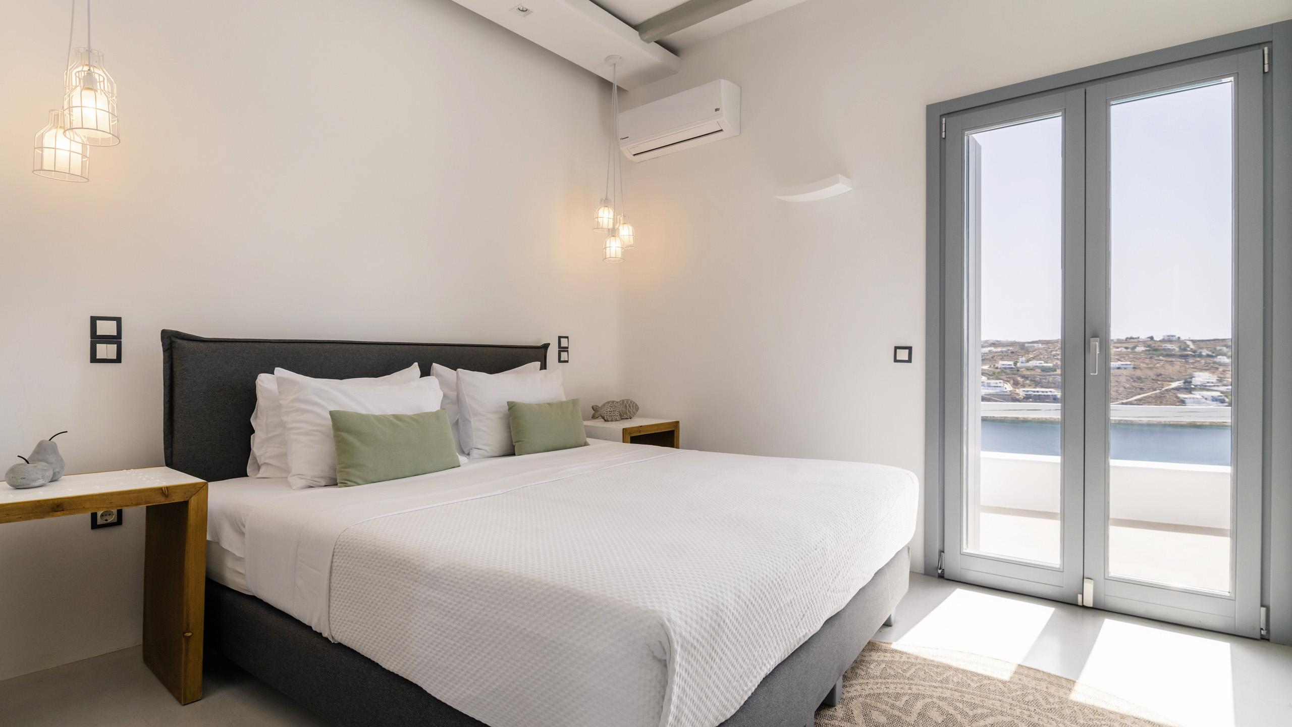 Arroccata sulle colline in un complesso residenziale a Kanalia, Maya gode di un'ampia vista che spazia dalla Baia di Korfos agli iconici mulini di Mykonos Town. La posizione è anche molto favorevole nei confronti di alcune famose spiagge, negozi di ogni tipo e la città, facilmente raggiungibile in pochi minuti di auto.