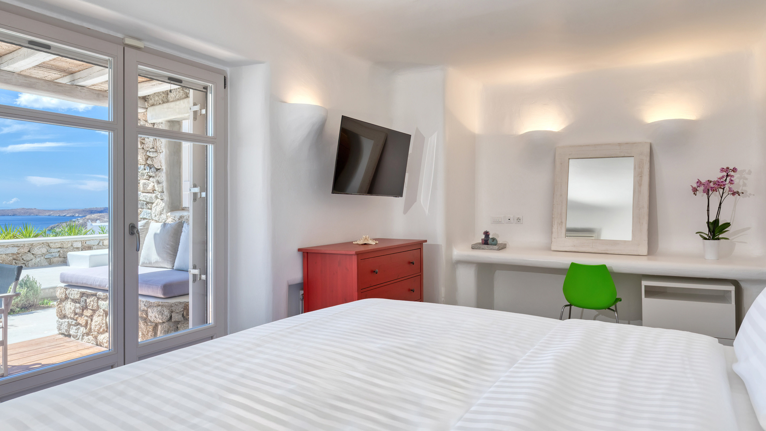 1 Camera Ospiti matrimoniale, A/C, bagno interno con doccia, accesso diretto all'area piscina, vista mare