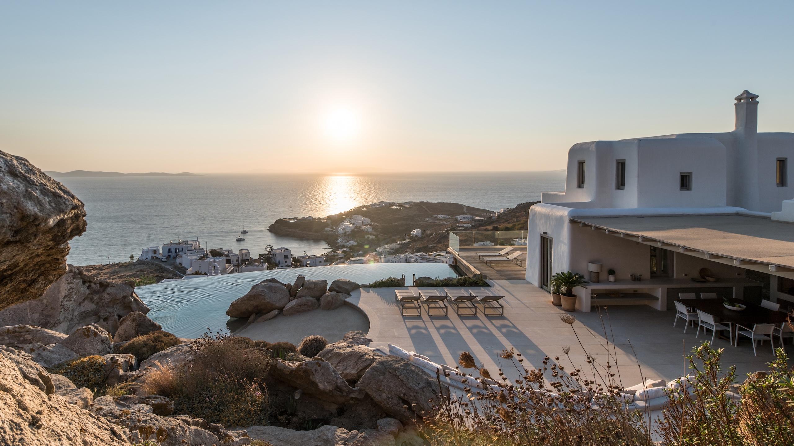 Sandstone è un'importante proprietà nella zona di Tourlos, combinazione perfetta per godere di una magnifica vista mare e restare a ragionevole distanza dalla movimentata Mykonos Town.